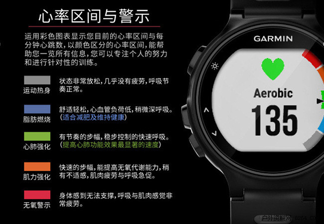 Forerunner735XT一改Garmin此前的铁三腕表矩形的表身设计,采用了经典的圆形表盘,机身更为轻薄,屏幕更为开阔。这款腕表最大的特点在于,它不仅仅可以搭配心率带使用,并且支持先进的光学心率监测技术,可以实时监测心率并显示心率区间,让你更加直观地了解身体当前处于何种状态,对于不喜欢佩戴心率带的铁三运动员来说,Forerunner735XT的出现简直是福音。需要注意的是,在游泳时无法使用光学心率监测心率数据。