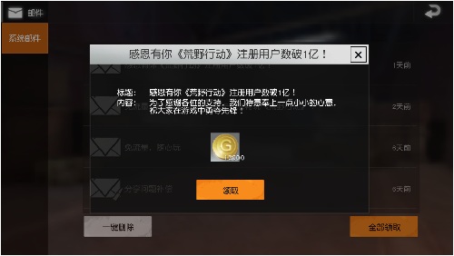 近日荒野行动的官方微博宣布荒野行动这款游戏的注册人数已经破亿,并且还在不断的增长中,荒野行动还专门为了纪念跟感谢向游戏里的玩家免费赠送了一些金币的福利,值得注意的是,这破亿的注册量不仅仅只是手机端的人数。